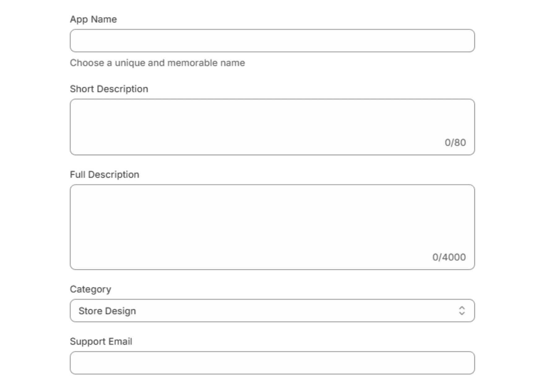 This step collects your app’s public-facing details. Fill out the form completely: