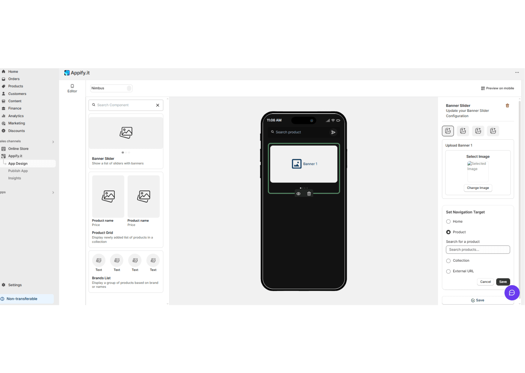 - Follow the on-screen setup guide to connect your store and start designing your app.