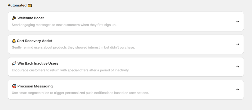 Manual push notifications are ideal for flash sales, product drops, or one-time updates.